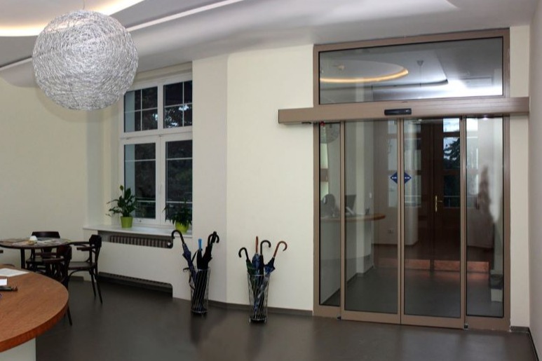 Domov pro seniory vyžaduje co nejvíce bezbariérových dveří. Rámové stěny s automatickými posuvnými dveřmi v rámovém provedení byly instalovány jak v hlavním vchodu, tak ve vstupu do zahrady. Jejich automatizaci i bezpečnost zajišťuje kombinovaný radar instalovaný z obou stran nade dveřmi.