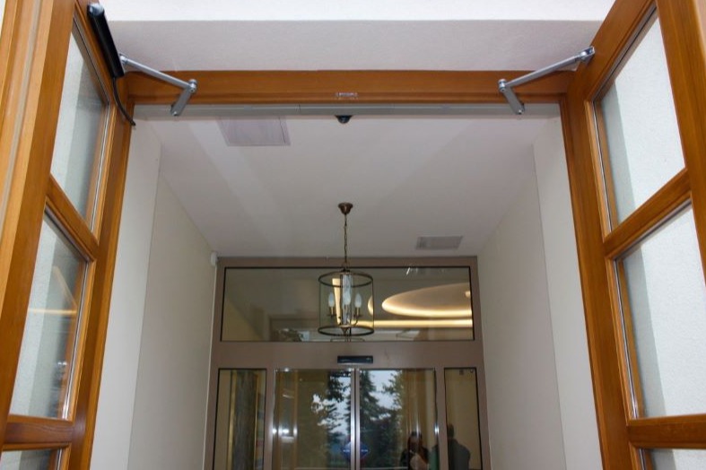 Historická budova domova důchodců má ve vstupu původní dřevěná skládací dveřní křídla. Jsou vybavena otočnými pohony, které zajišťují bezbariérový průchod. Bezpečnost procházejících je zajištěna bezpečnostními lištami v horní části dveřních křídel.