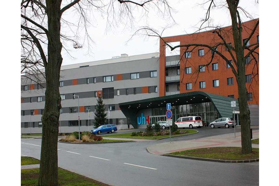 Bezbariérové propojení dvou nemocničních budov je zajištěno dvoukřídlými automatickými posuvnými dveřmi SPEDOS s pohony SP806L. V každé budově je tok procházejících veden čistící zónou v zádveří a dvěma automatickými dveřmi přes komunikaci pod nástřeškem do dalšího zádveří a čistící zóny v druhé budově.