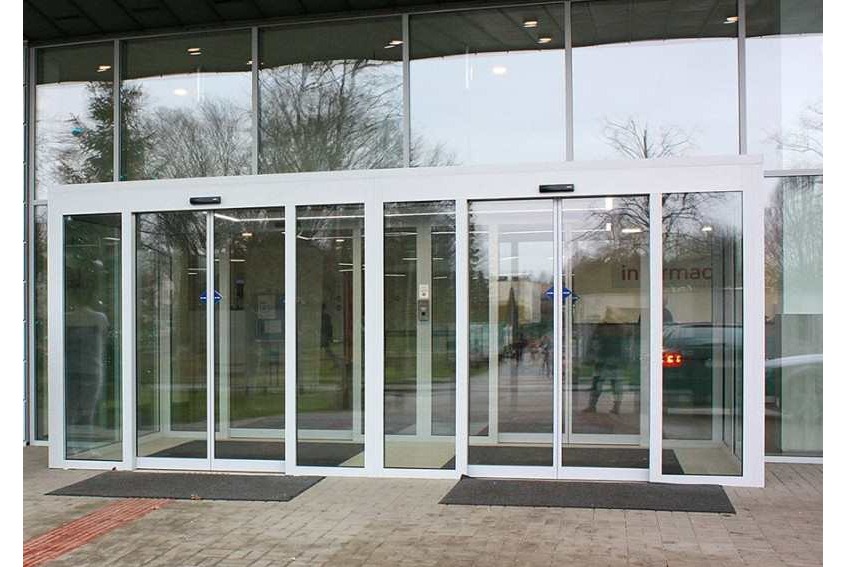 Zádveří do polikliniky je vytvořeno hliníkovou prosklenou konstrukcí a dvěma automatickými posuvnými dvoukřídlými dveřmi v lineárním provedení. Automatické dveře jsou vybaveny nízkým elektropohonem SP806NL o pohledové výšce 110 mm.