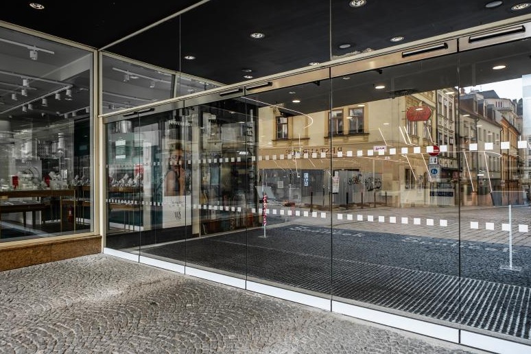 V zájmu zajištění co nejširšího vchodu do obchodního domu byly instalovány dvoje jednostranné teleskopické dveře proti sobě.